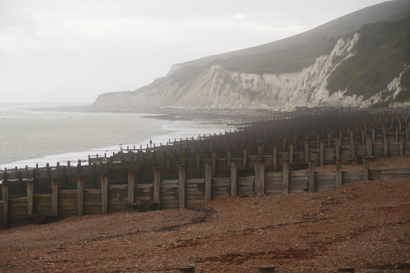 De eerste dagen konden we nog acclimatiseren op de camping bij Eastbourne en de nieuwe wijk Sovereign Harbour. Wandelend langs de seafront om ons startnummer op te halen en weer terug naar de camping. Daar waren we wel een dagje mee onderweg. Op de dag van de marathon was het prachtig weer: zon en blauwe lucht, maar wel een straffe wind. De eerste helft hadden we die nog grotendeels tegen of van de zijkant. Maar de uitzichten waren magnifiek. Wat een geweldig landschap om doorheen te rennen. Nou ja, soms meer wandelen als het te steil werd. Het uitzicht op Cuckmere Valley dat grotendeels onder water stond was prachtig, ook al moest de route daardoor wel wat verlegd worden. Over de Seven Sisters hadden we voornamelijk de wind in de rug. En dat hielp wel heuvelop en bij de laatste kilometers. De laatste hindernis was nog de steile grashelling, maar nu naar beneden naar de finish. Kort na de start waren we hier omhoog gekomen, glibberend en klauterend. Maar met de finish in zicht was het een stuk gemakkelijker. Voor een mooie tijd hoef je deze marathon niet te lopen, maar voor de uitzichten en landschapsbeleving is het een ervaring om nooit te vergeten.