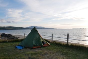 Door de Ox Mountains en het Wild Nephin National Park met z’n vele rododendrons komen we over de Sheeffry Pass. In het veld zien we steeds meer turf te drogen staan. Trekkertjes met karren vol turf rijden ons voorbij en bij huizen zien we vaak een hele stapel liggen. Het lijkt erop dat turf hier nog als brandstof wordt gebruikt. Met prachtig weer komen we aan op de Connemara camping aan de Atlantische Oceaan. Onze tent staat pole position voor de zonsondergang die fenomenaal is.