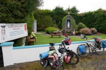 In Sligo, waar we met een beetje bedelen nog een plekje (in hun ogen dan, voor ons was het een enorm ruime plek) op de camping kregen, werden we buiten de Lidl waar we boodschappen hadden gedaan opgewacht door een man. Hij had onze fietsen zien staan en bood ons een kampeerplekje in zijn tuin aan als we in Dublin zouden aankomen. Hoe tof is dat?