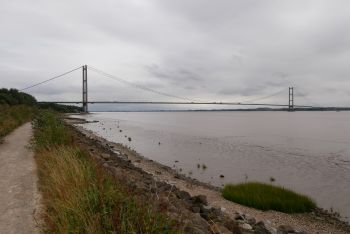 De indrukwekkende Humber Bridge is ons baken op weg naar de stad, die nog de sporen laat zien van de hevige onlusten die er de dagen ervoor waren (en in de rest van Engeland), zoals kapotte winkelruiten.